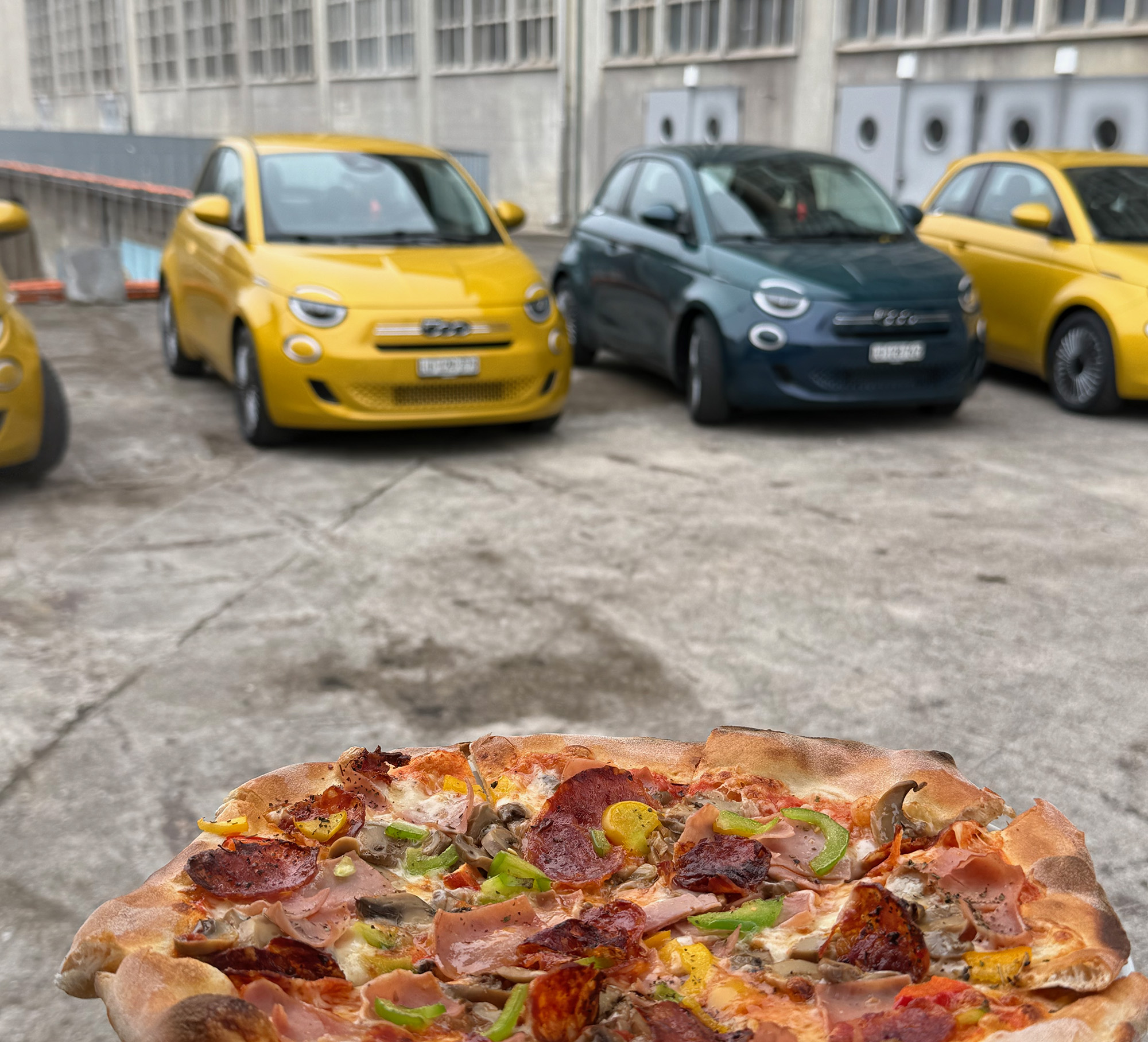 Muss sein: Pizza beim Fiat 500 Media Drive