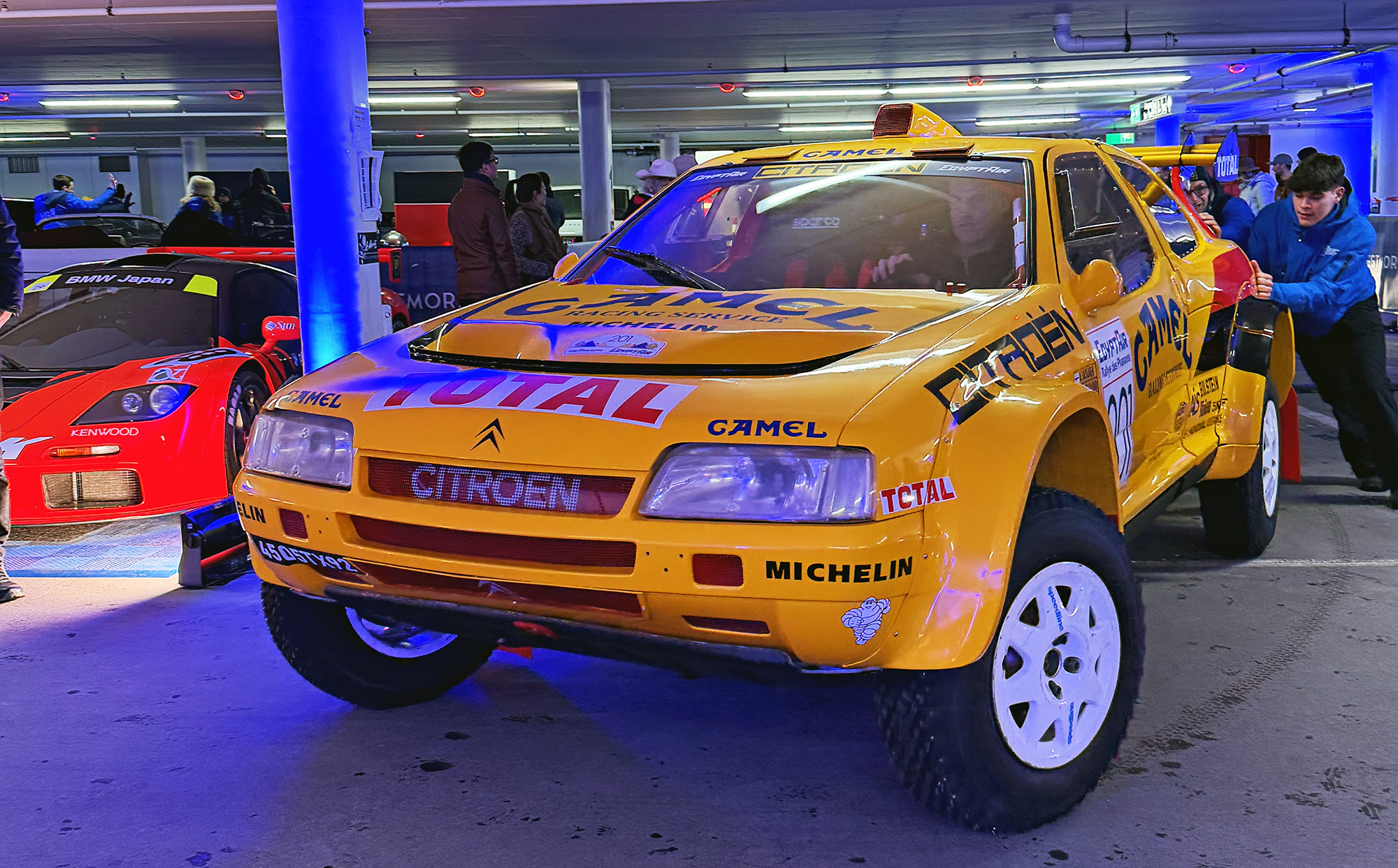 Ein weiteres französisches Fahrzeug, das am ICE die Aufmerksamkeit auf sich zog. Anders als Audi Quattro oder Lancia Delta S4 gab es vom ZX keine Strassenvariante. Vielleicht ist er deshalb fast gänzlich unbekannt, obwohl er die damals noch zurecht Paris – Dakar genannte Rallye gleich mehrfach gewinnen konnte. Der Reihenvierer bringt es auf 300 PS, was bei knapp 1600 Kilo Leergewicht für flüssige Fortbewegung sorgen dürfte. Quer eingebaut sitzt er tief in der Mitte des gelben Franzosen. Dahinter sind gleich zwei Ersatzräder montiert. Mit Allrad und Sperrdifferenzialen ausgerüstet, kann er auch auf Schnee und Eis brillieren.